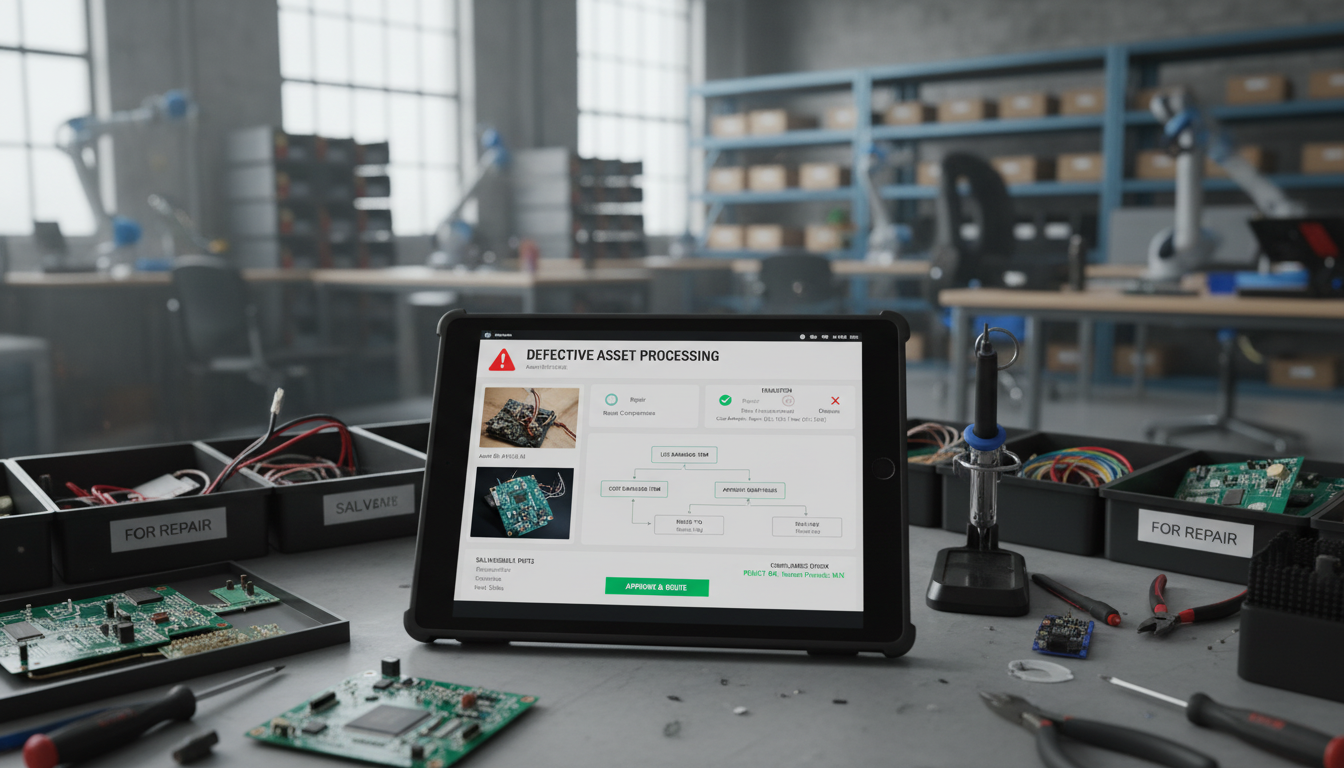 Defective assets are logged, evaluated, and routed for repair, reuse, or compliant disposal. This minimizes waste while recovering value from salvageable components.