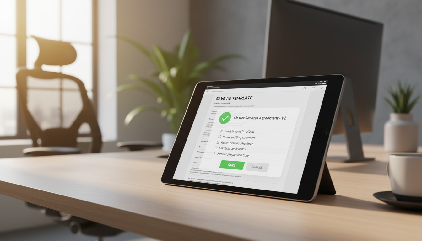 The Save as Template feature allows users to store finalized contracts as reusable templates. This functionality ensures that once a contract is perfected, it can serve as a blueprint for future agreements.