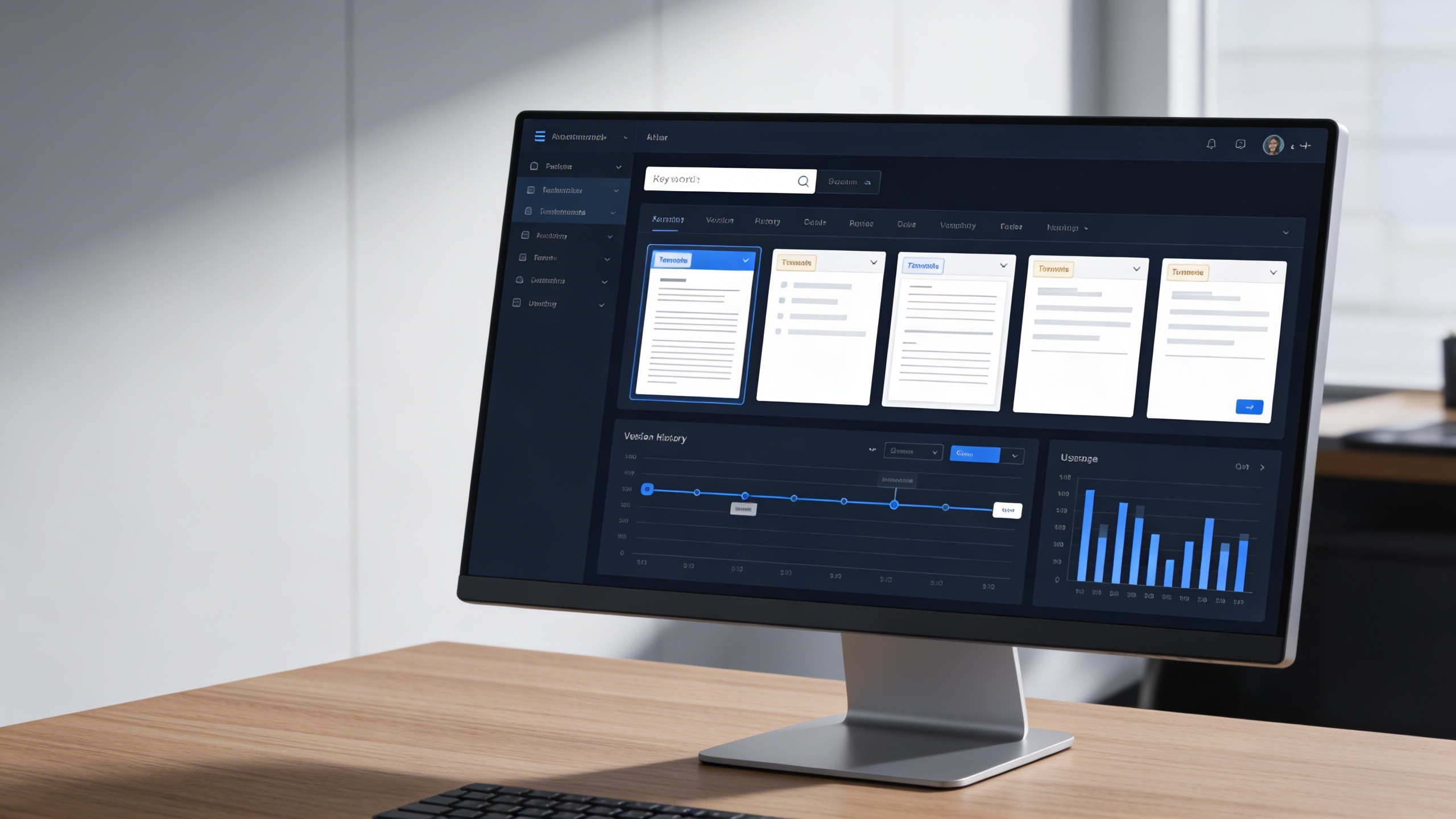 All templates are indexed, categorized, version-controlled, and searchable for rapid retrieval. Usage analytics and version rollback provide control, governance, and flexibility for high-volume teams.
