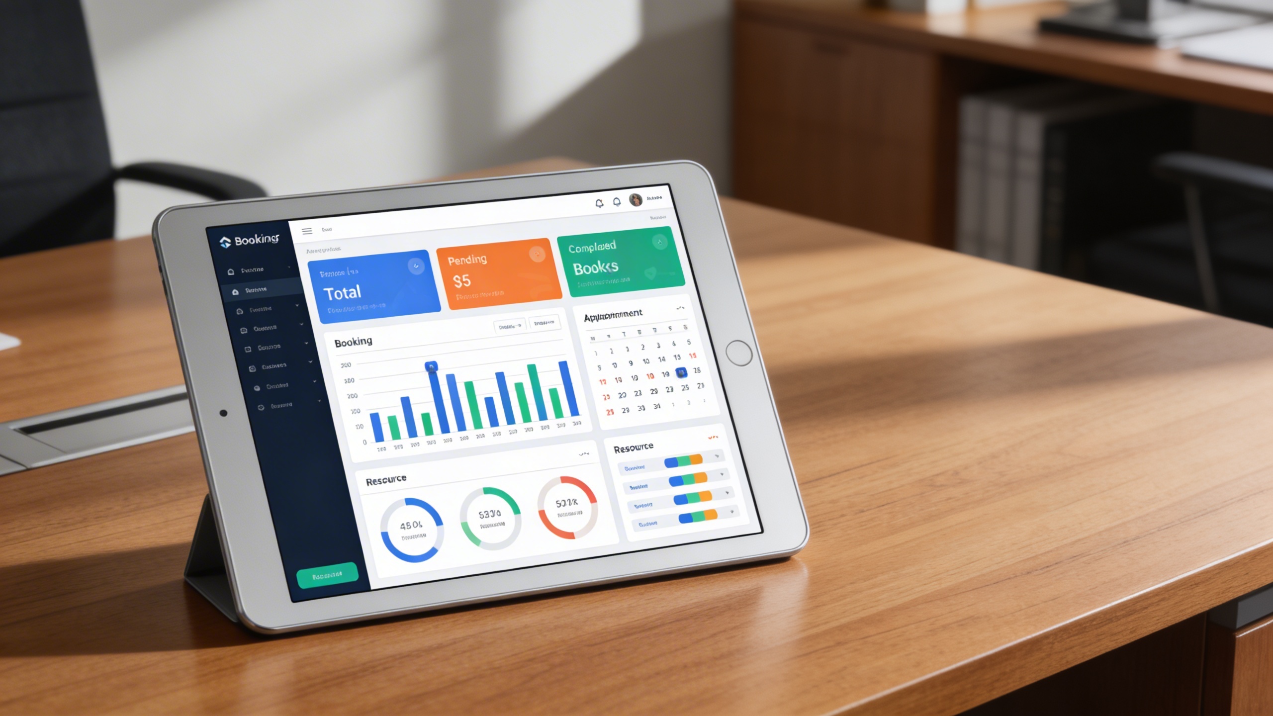 Make data-driven decisions with comprehensive booking insights. The reporting dashboard monitors total, pending, and completed appointments, helping administrators track growth, performance, and utilization trends.