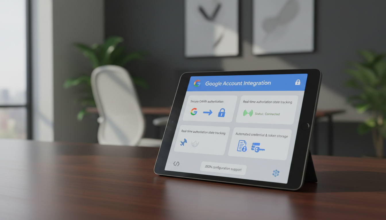 Users can securely link their Google accounts with a smooth OAuth workflow. Credentials, tokens, and authorization status are managed automatically, ensuring continuous and reliable connectivity without manual intervention.