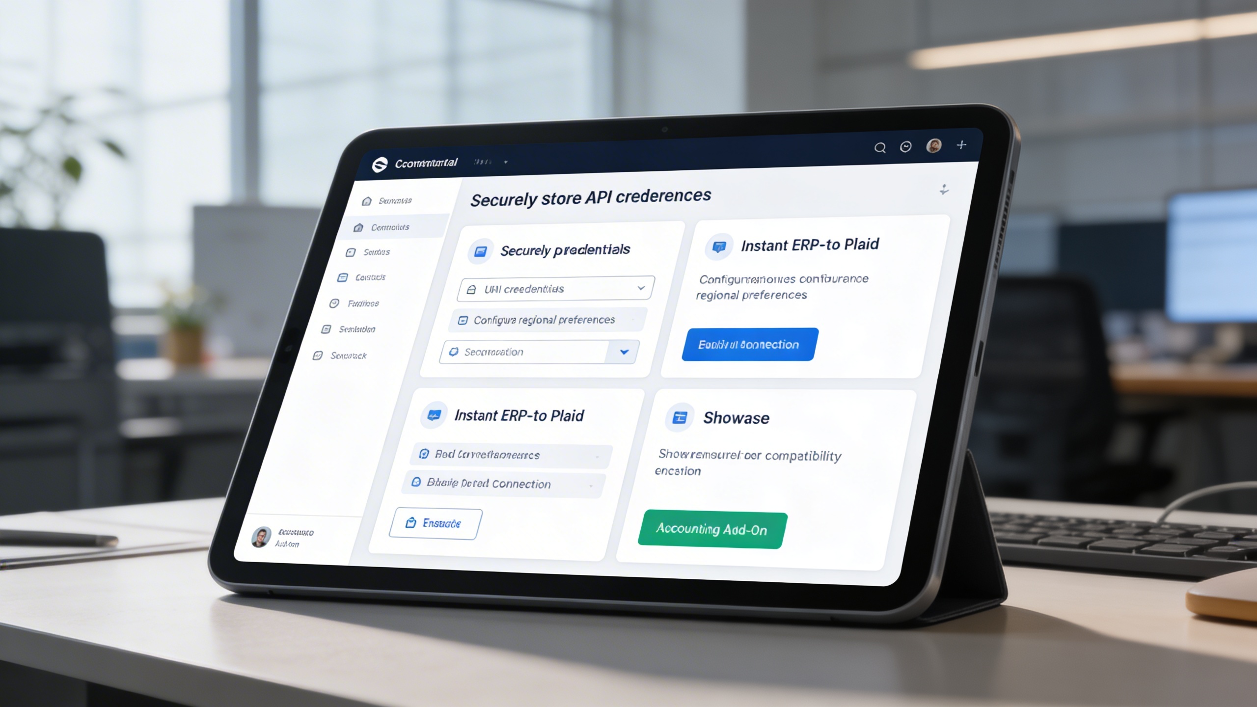 Users can connect Plaid quickly by configuring credentials, regional preferences, and system settings in just a few steps. All sensitive information is encrypted, ensuring compliance, security, and reliable ERP-to-bank communication.