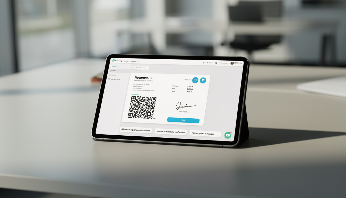 Each invoice is secured with QR codes, cryptographic hashes, and digital signatures for instant verification. This prevents tampering and enables auditors or customers to validate invoice authenticity immediately.