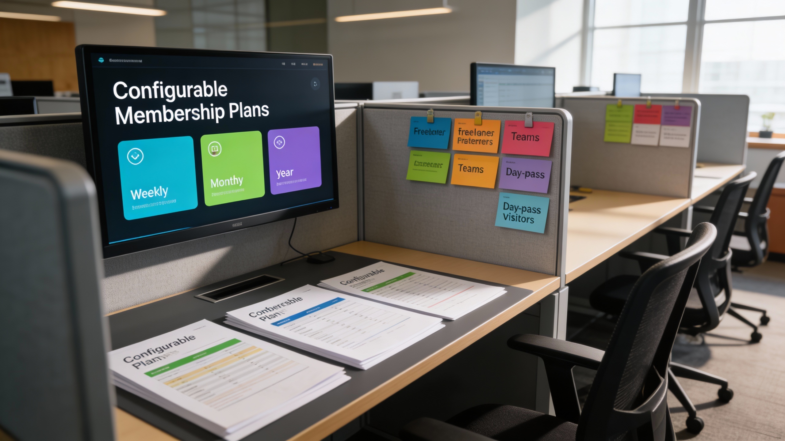 Administrators can build flexible plans that fit diverse user needs, including freelancers, teams, or day-pass visitors. Plans can include amenities, visibility settings, and color categorization for a clean and user-friendly browsing experience.