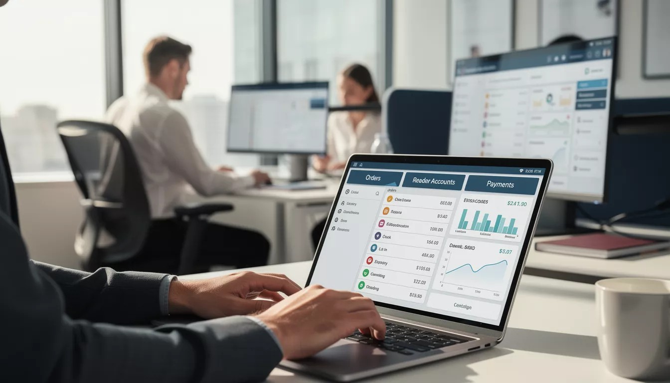 Handle transactions and reader interactions with automated delivery and organized account management. Track purchases, communication, and payments for seamless operational flow.