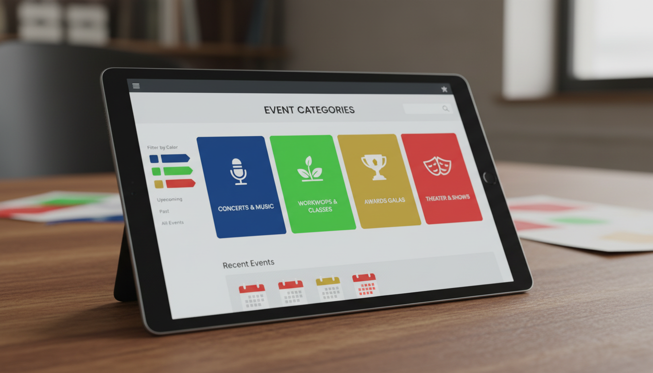 Create clear event structure with visual categories to simplify browsing and internal organization. Color tagging and posters help differentiate event types for better branding and user experience.