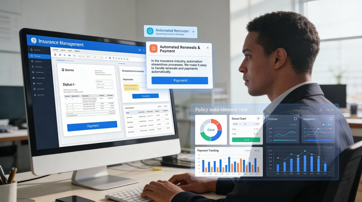 The system manages premium reminders, invoices, and auto-renewal rules to reduce missed payments and manual follow-ups. Payment tracking and digital billing tools ensure financial clarity across all client accounts.