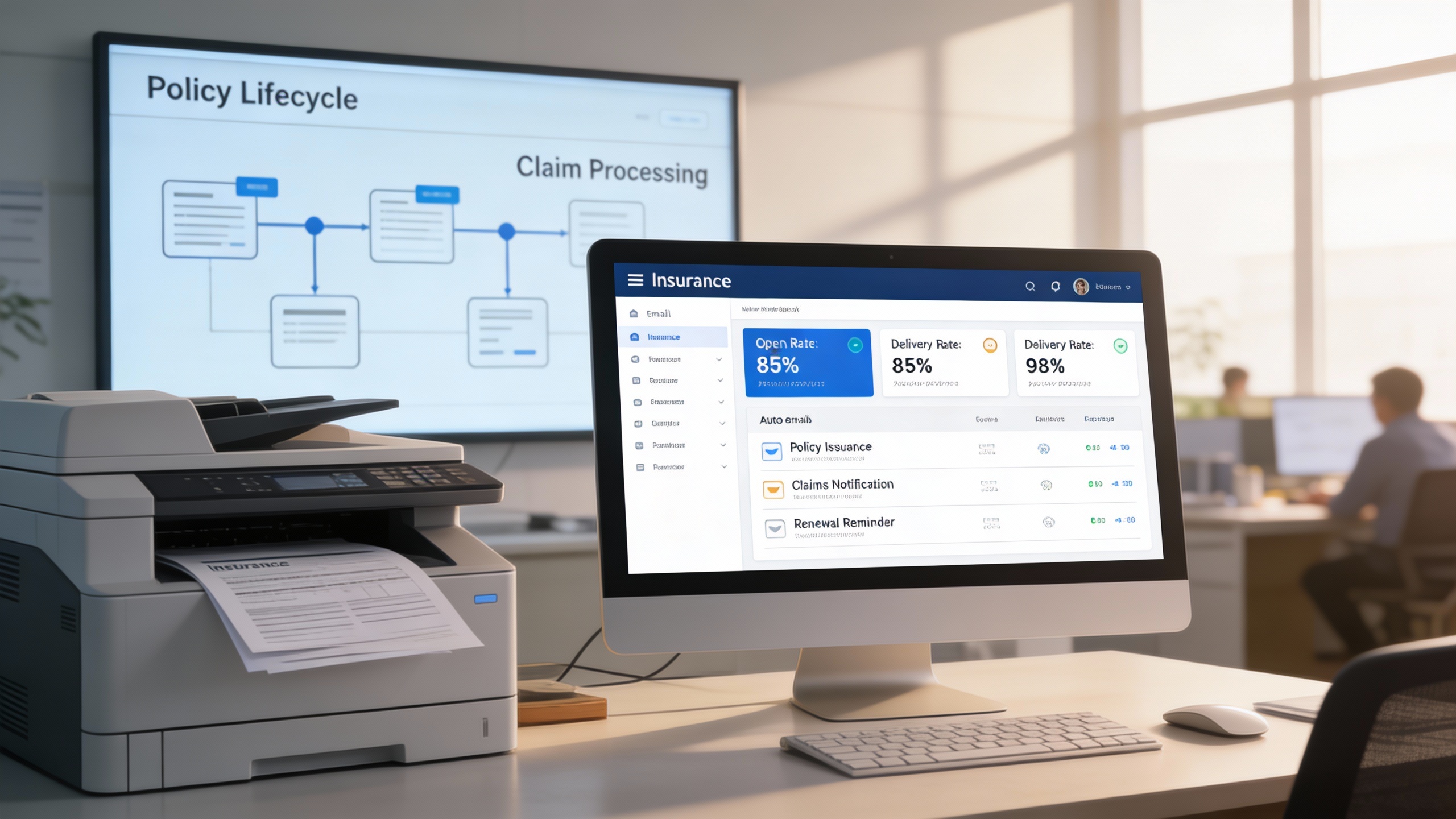 Automated email triggers keep clients and internal teams informed about important events such as issuance, claims, renewals, and approvals. All messages are tracked and archived, giving teams full visibility into communication history.