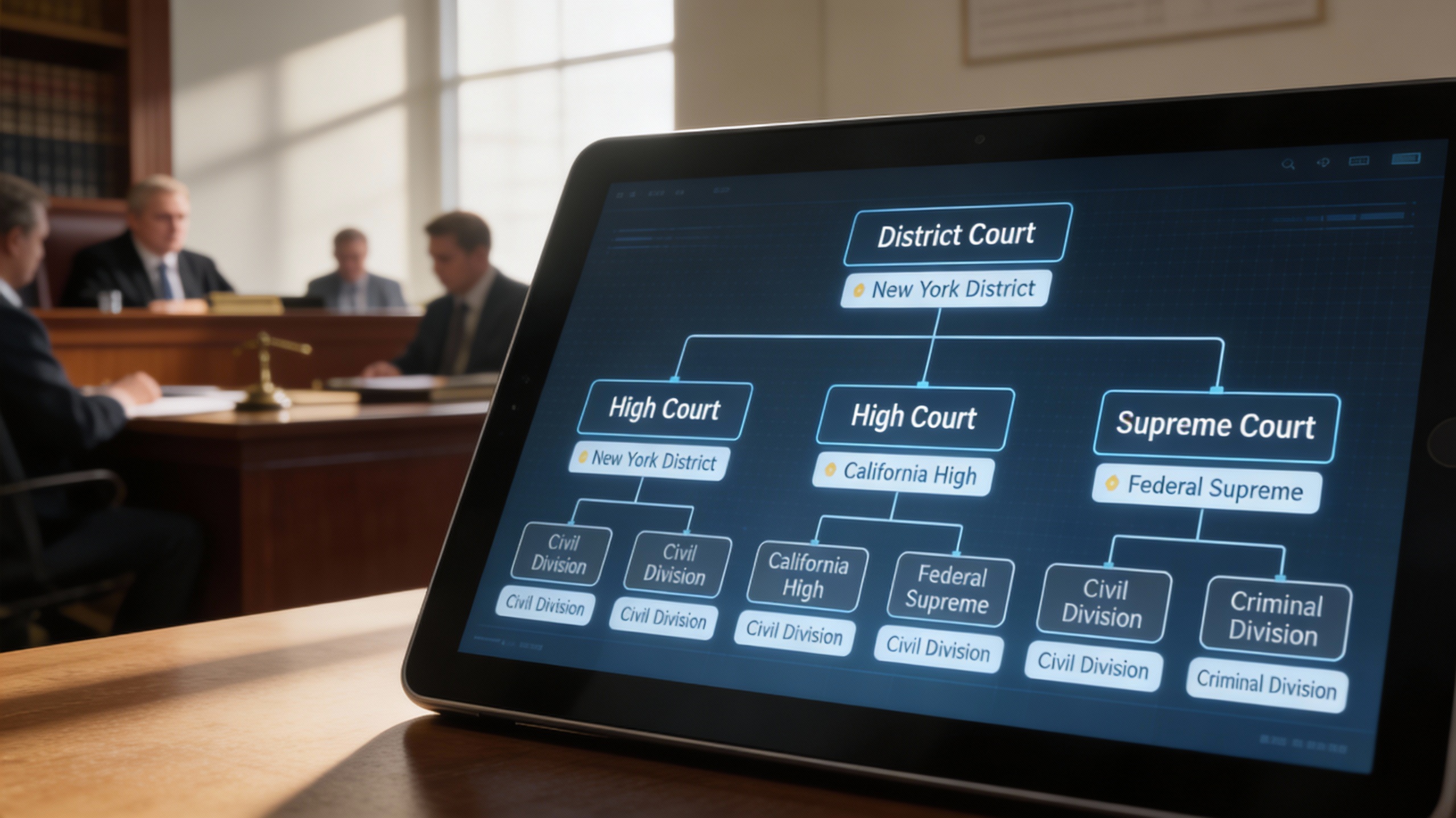Define courts, divisions, and regional jurisdictions with complete clarity, connecting sub-courts to parent courts for easy navigation. This helps ensure cases are assigned correctly and all parties understand the legal structure at a glance.