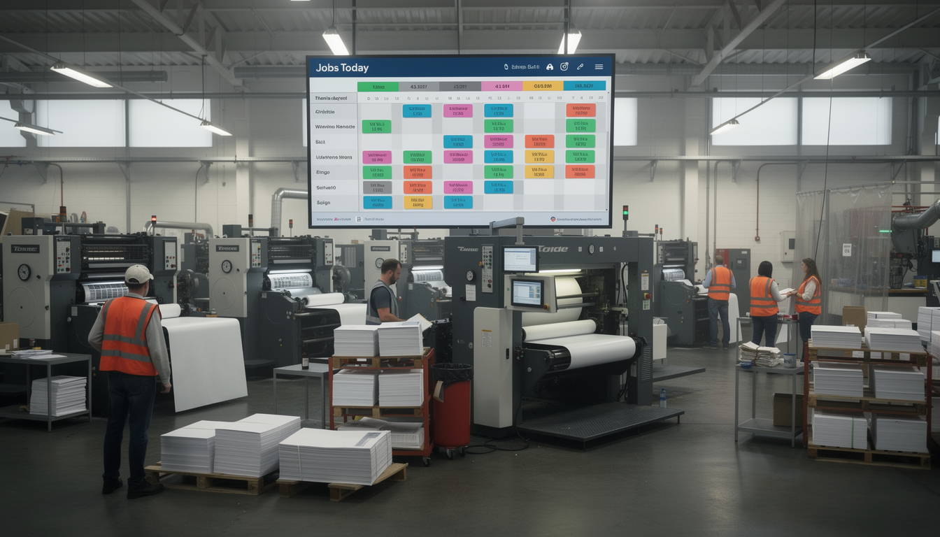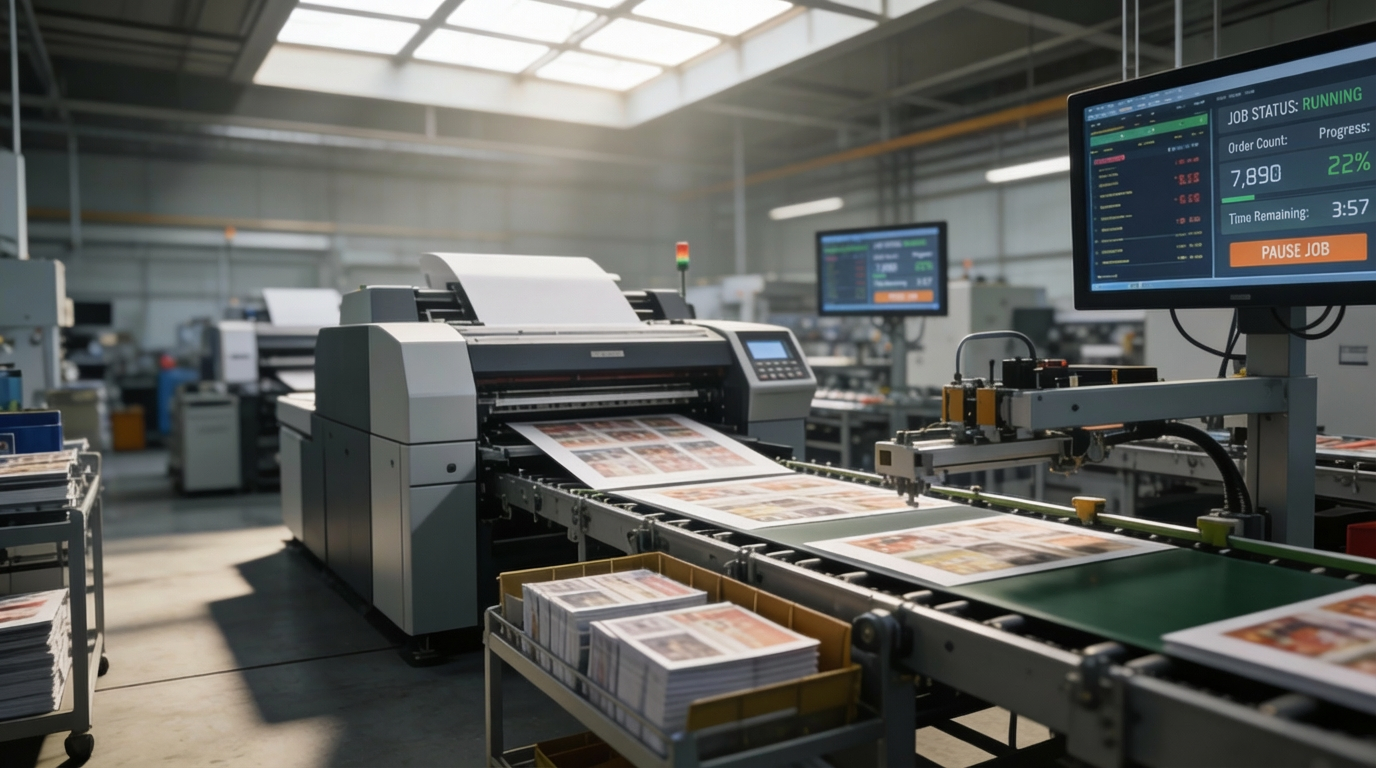 Optimize printing operations with centralized order handling, machine monitoring, and real-time production intelligence.
